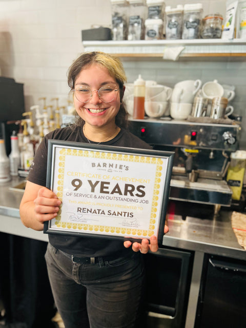 Irene Eusebio has played a very important role in Barnie's Coffee history and we loved celebrating with the whole team her awesome work over the past 21 years!